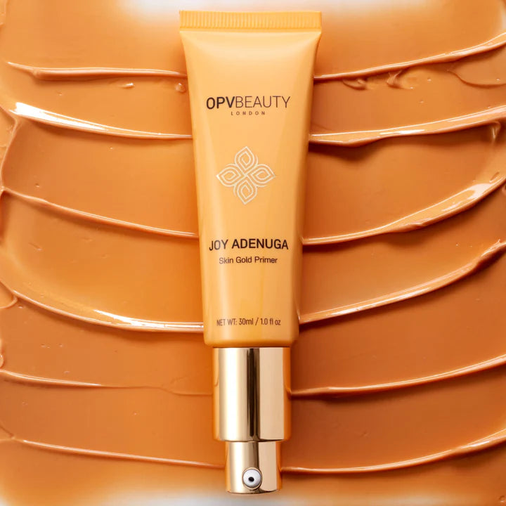 Experience the magic of radiant, glowing skin with Skin Gold Primer by Joy Adenuga. Infused with luxe gold particles, this silky primer transforms your complexion in an instant, giving you a dewy, luminous finish that lasts all day. Whether you wear it alone for a natural glow or as a flawless base for makeup, this primer enhances your skin’s texture, leaving it feeling smooth, hydrated, and glowing with a warm, bronzed hue.